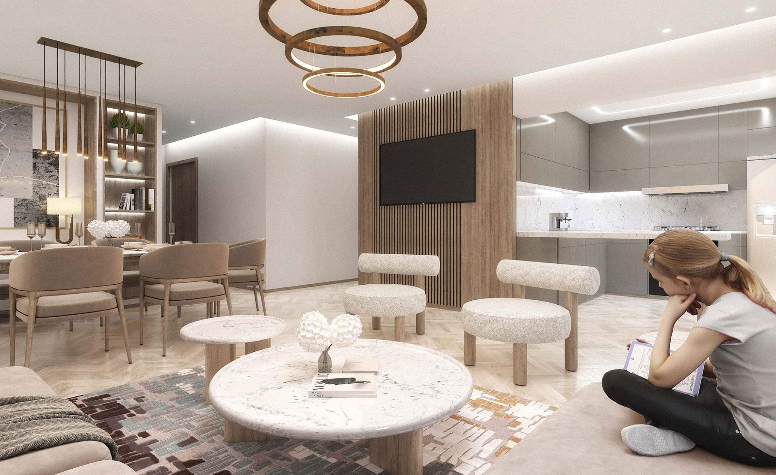 Tower C (22 Floors) is dedicated to residential living, featuring 226 thoughtfully designed homes. The unit mix includes studios, 1‑bedroom, 2‑bedroom, 3‑bedroom, and spacious 3‑bedroom duplex apartments. Each residence is crafted to maximize natural light, enhance privacy, and deliver a refined living experience with contemporary layouts and premium finishes.
