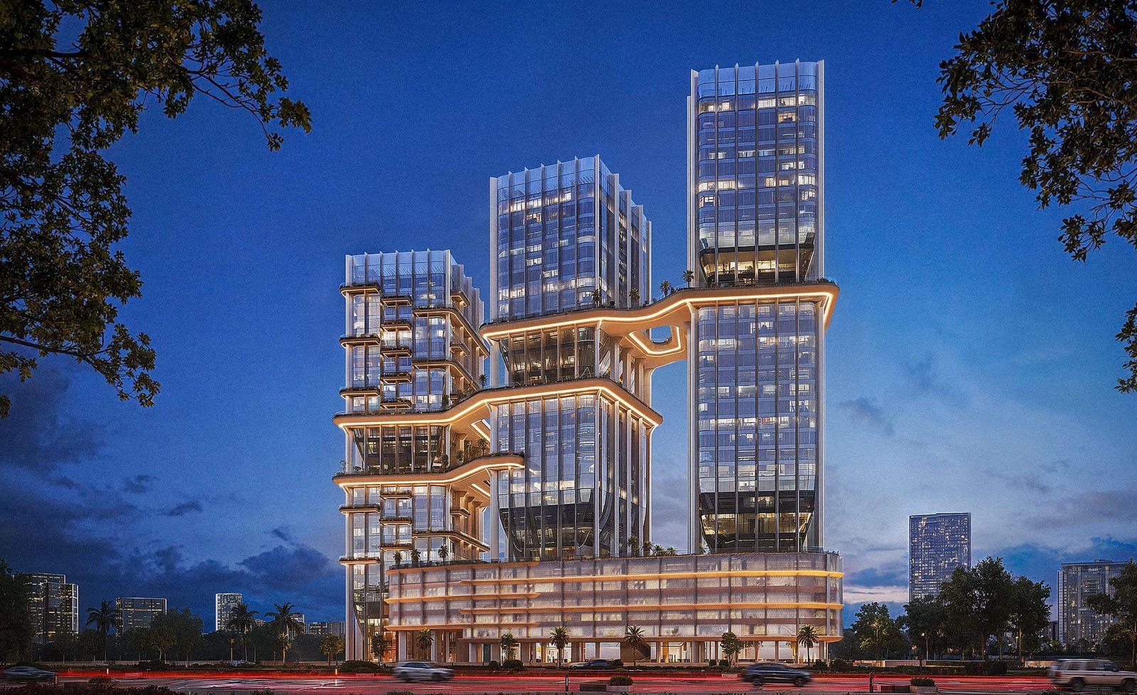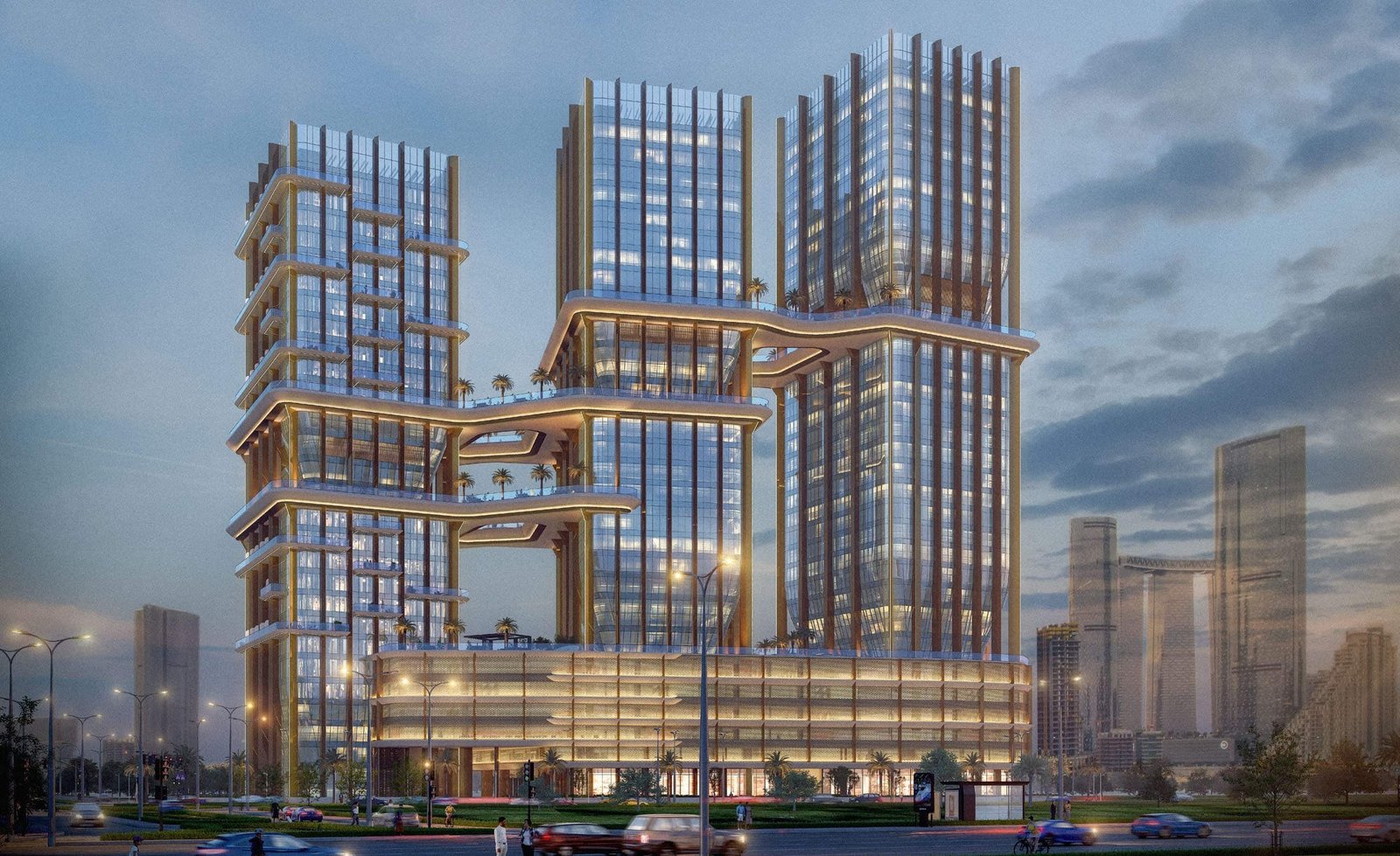 - Three‑tower mixed‑use development: two Grade‑A office towers + one residential tower